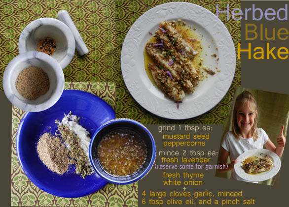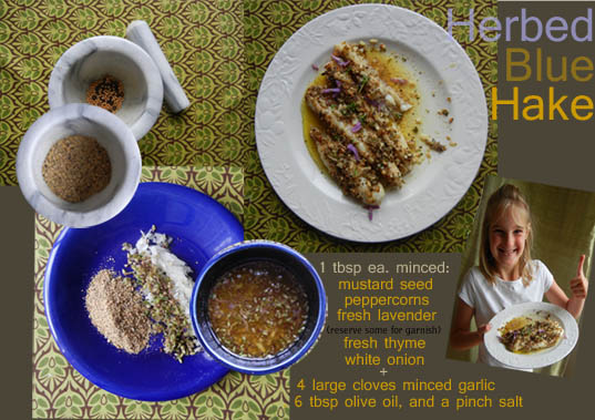 Our “recipic” for Herbed Blue Hake highlights how ground mustard seed and peppercorns are combined with lavender, thyme, onion, garlic and olive oil to produce a highly aromatic herb mixture that will entice everyone to join you in the kitchen the minute it starts baking!