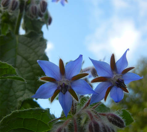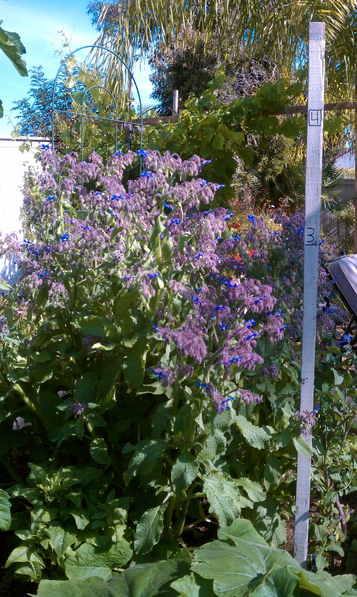 Wow, this is our borage (starflower) this year. It grew so tall and full there is enough for the kids and the bees! Our girls feel like they are in another world poking around the borage bush.